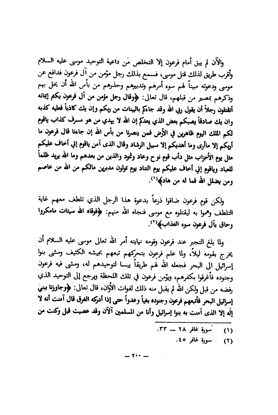 والآن لم يبق أمام فرعون إلا التخلص من داعية التوحيد موسى عليه السلام وأقرب طريق لذلك قتل موسى، فسمع بذلك رجل مؤمن من آل فرعون فدافع عن موسى ودعوته مبينًا لهم سوء أمرهم وتدبيرهم وحذرهم من بأس الله أن يحل بهم وذكرهم بمصير من قبلهم، قال تعالى: {وَقَالَ رَجُلٌ مُؤْمِنٌ مِنْ آلِ فِرْعَوْنَ يَكْتُمُ إِيمَانَهُ أَتَقْتُلُونَ رَجُلاً أَنْ يَقُولَ رَبِّيَ اللَّهُ وَقَدْ جَاءَكُمْ بِالْبَيِّنَاتِ مِنْ رَبِّكُمْ وَإِنْ يَكُ كَاذِباً فَعَلَيْهِ كَذِبُهُ وَإِنْ يَكُ صَادِقاً يُصِبْكُمْ بَعْضُ الَّذِي يَعِدُكُمْ إِنَّ اللَّهَ لا يَهْدِي مَنْ هُوَ مُسْرِفٌ كَذَّابٌ, يَا قَوْمِ لَكُمُ الْمُلْكُ الْيَوْمَ ظَاهِرِينَ فِي الأَرْضِ فَمَنْ يَنصُرُنَا مِنْ بَأْسِ اللَّهِ إِنْ جَاءَنَا قَالَ فِرْعَوْنُ مَا أُرِيكُمْ إِلاَّ مَا أَرَى وَمَا أَهْدِيكُمْ إِلاَّ سَبِيلَ الرَّشَادِ, وَقَالَ الَّذِي آمَنَ يَا قَوْمِ إِنِّي أَخَافُ عَلَيْكُمْ مِثْلَ يَوْمِ الأَحْزَابِ, مِثْلَ دَأْبِ قَوْمِ نُوحٍ وَعَادٍ وَثَمُودَ وَالَّذِينَ مِنْ بَعْدِهِمْ وَمَا اللَّهُ يُرِيدُ ظُلْماً لِلْعِبَادِ, وَيَا قَوْمِ إِنِّي أَخَافُ عَلَيْكُمْ يَوْمَ التَّنَادِ, يَوْمَ تُوَلُّونَ مُدْبِرِينَ مَا لَكُمْ مِنْ اللَّهِ مِنْ عَاصِمٍ وَمَنْ يُضْلِلِ اللَّهُ فَمَا لَهُ مِنْ هَادٍ} 1.