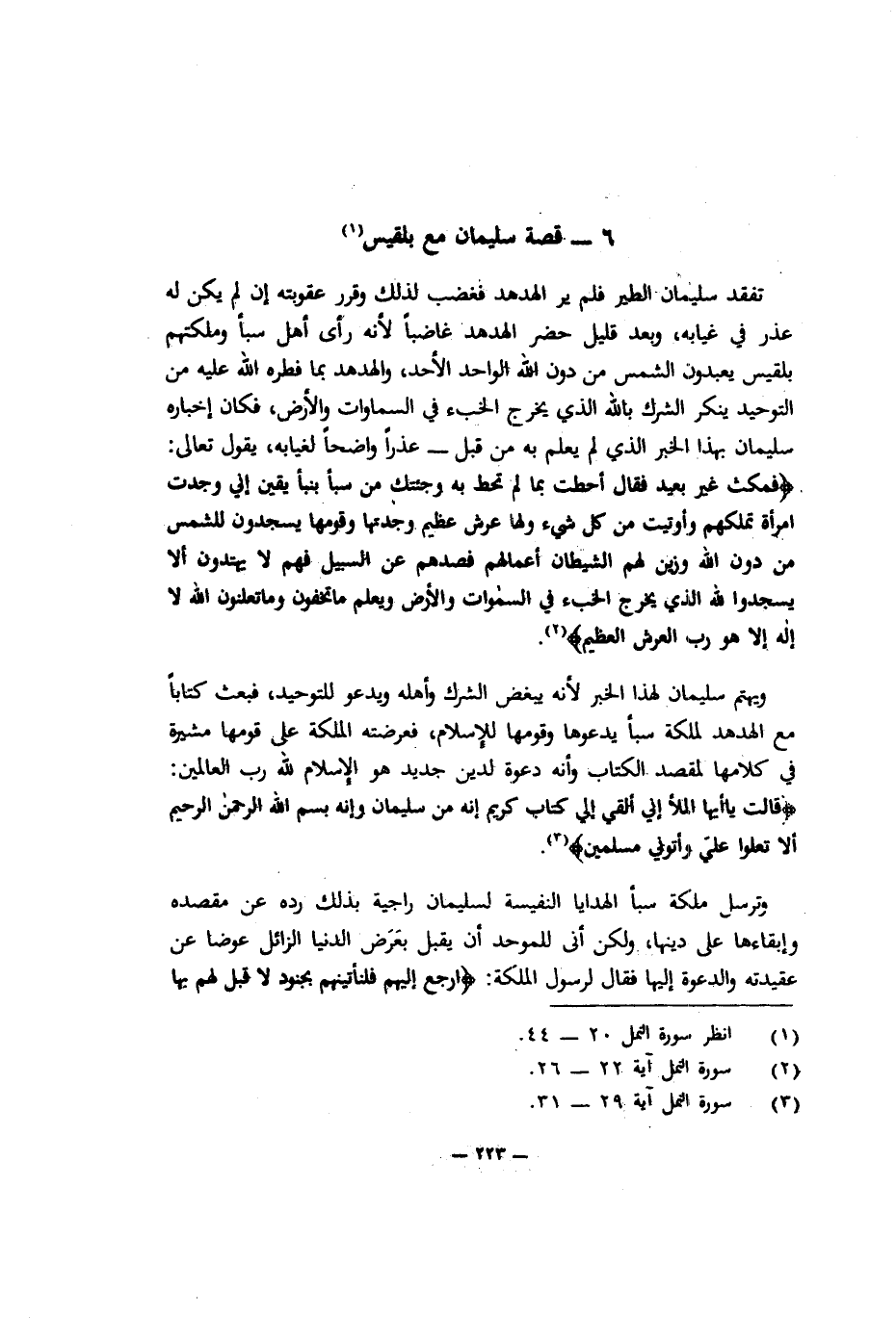 ويهتم سليمان لذا الخبر؛ لأنه يبغض الشرك وأهله ويدعو للتوحيد، فبعث كتابًا مع الهدهد لملكة سبأ يدعوها وقومها للإسلام، فعرضته الملكة على قومها مشيرة في كلامها لمقصد الكتاب وأنه دعوة لدين جديد هو الإسلام لله رب العالمين: {قَالَتْ يَا أَيُّهَا المَلأ إِنِّي أُلْقِيَ إِلَيَّ كِتَابٌ كَرِيمٌ, إِنَّهُ مِنْ سُلَيْمَانَ وَإِنَّهُ بِسْمِ اللَّهِ الرَّحْمَنِ الرَّحِيمِ, أَلاَّ تَعْلُوا عَلَيَّ وَأْتُونِي مُسْلِمِينَ} 3.