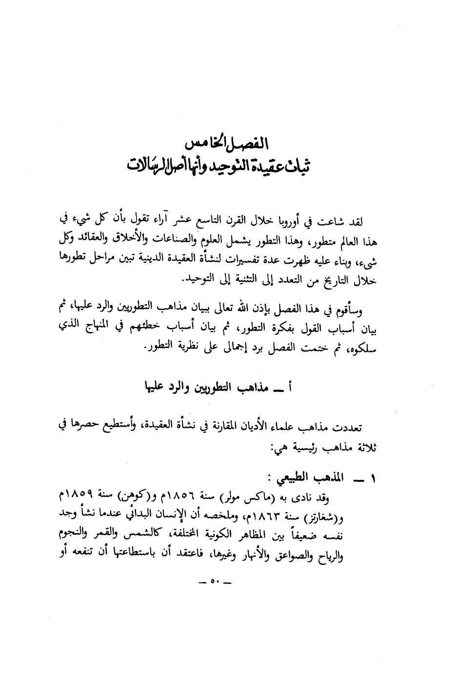 الفصل الخامس: ثبات عقيدة التوحيد وأنها أصل الرسالات