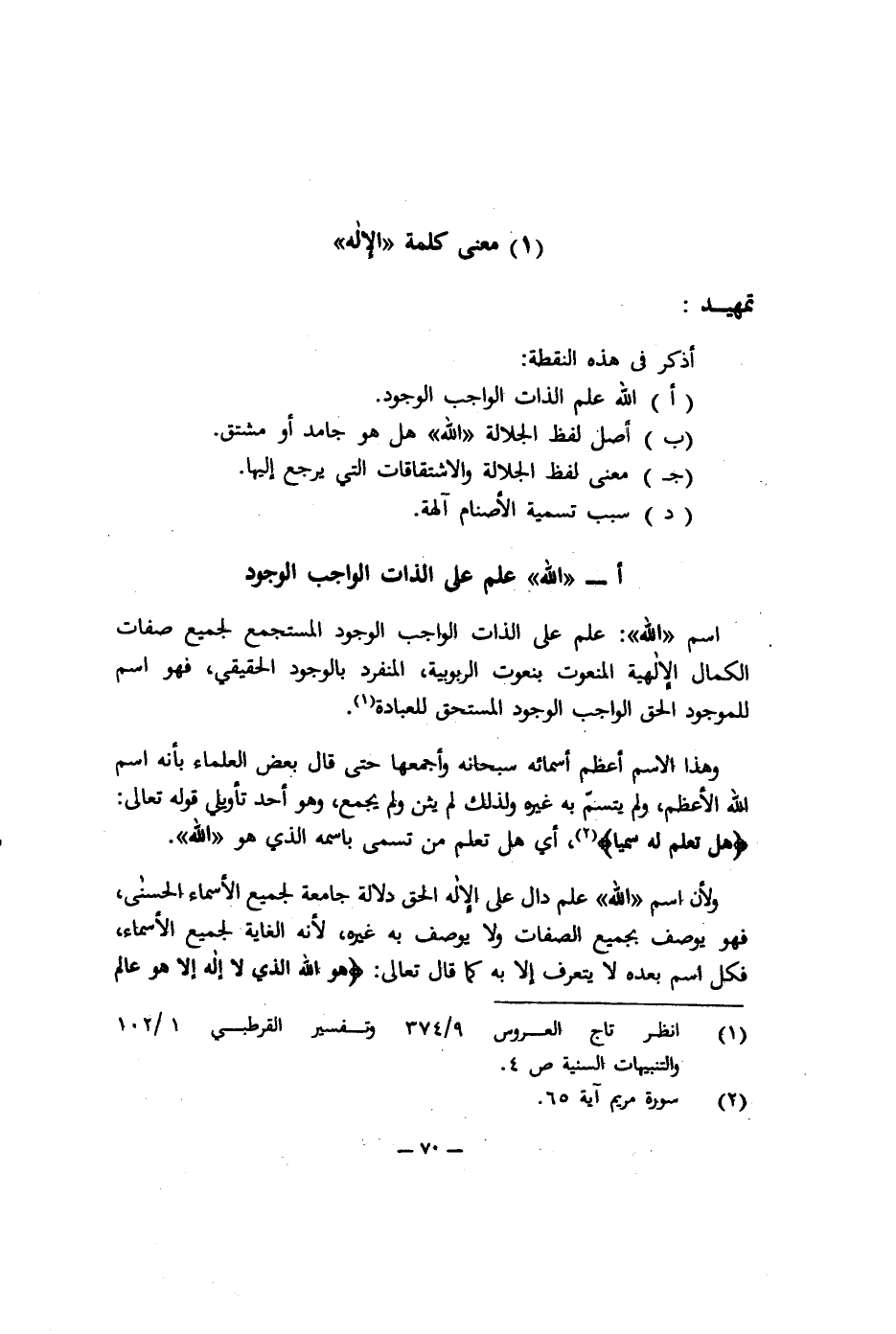 أ- "الله" علم على الذات الواجب الوجود