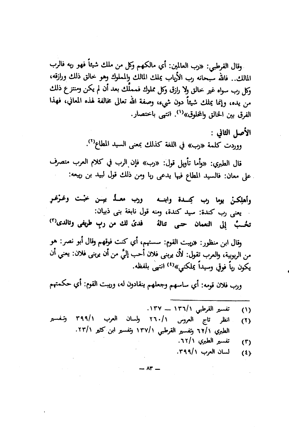 1 انظر تاج العروس 1/260، ولسان العرب 1/399، وتفسير الطبري 1/62، وتفسير القرطبي 1/137، وتفسير ابن كثير 1/23.