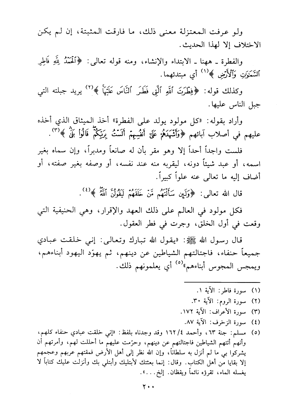 وَأَرَادَ بِقَوْلِهِ: "كُلُّ مَوْلُودٍ يُولَدُ عَلَى الْفِطْرَةِ" أَخَذَ الْمِيثَاقَ الَّذِي أَخَذَهُ عَلَيْهِمْ فِي أَصْلَابِ آبَائِهِمْ {وَأَشْهَدَهُمْ عَلَى أَنْفُسِهِمْ أَلَسْتُ بِرَبِّكُمْ قَالُوا بَلَى} 3.