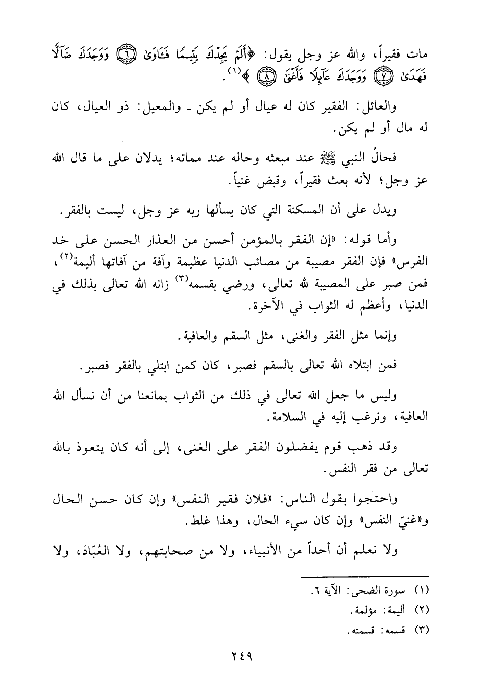 وَقَدْ ذَهَبَ قَوْمٌ يُفَضِّلُونَ الْفَقْرَ عَلَى الْغِنَى، إِلَى أَنَّهُ كَانَ يَتَعَوَّذُ بِاللَّهِ تَعَالَى مِنْ فَقْرِ النَّفْسِ.