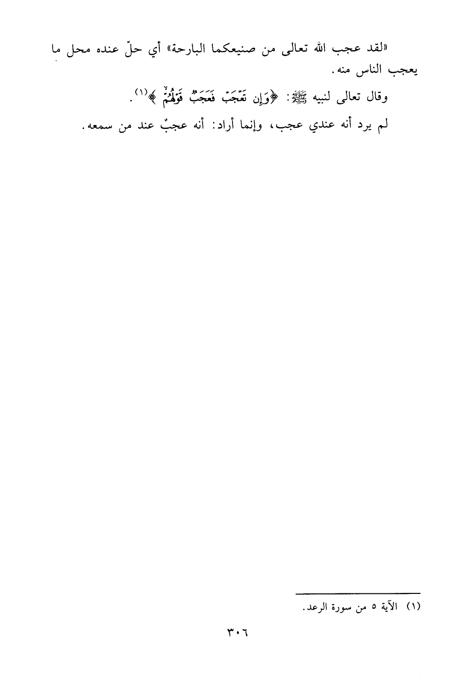 وَقَالَ تَعَالَى لِنَبِيِّهِ صَلَّى اللَّهُ عَلَيْهِ وَسَلَّمَ: {وَإِنْ تَعْجَبْ فَعَجَبٌ قَوْلُهُمْ} 1.
