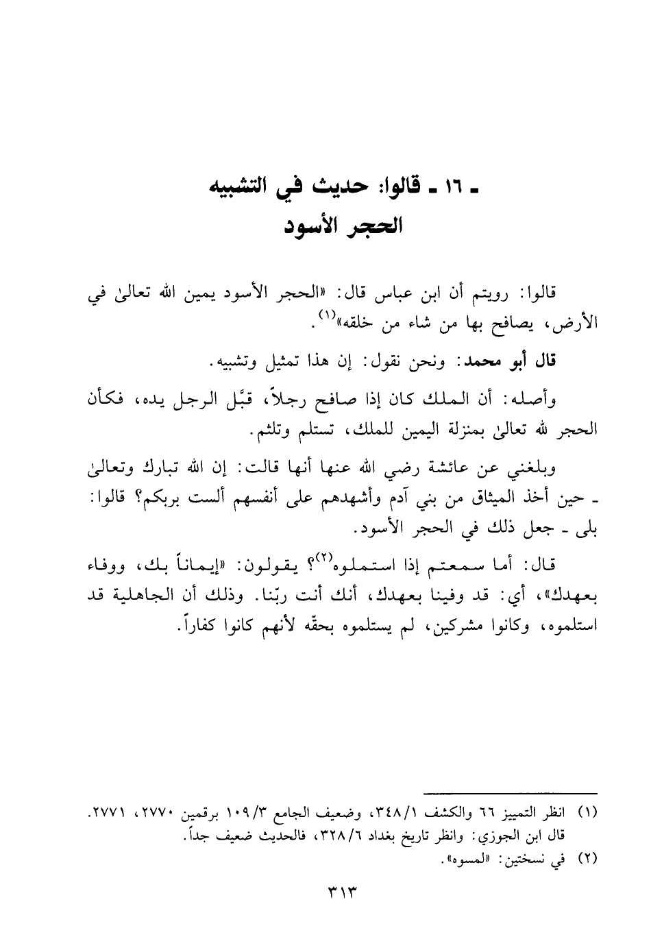 16- قَالُوا حَدِيثٌ فِي التَّشْبِيهِ- الْحَجَرُ الْأَسْوَدُ: