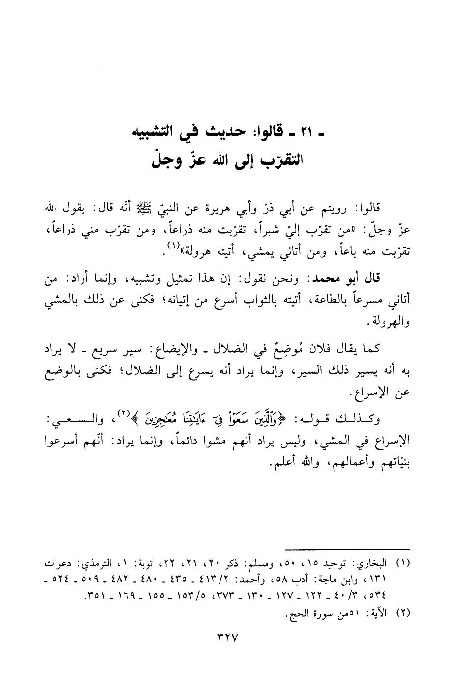 21- قَالُوا: حَدِيثٌ فِي التَّشْبِيهِ- التَّقَرُّبُ إِلَى اللَّهِ عَزَّ وَجَلَّ: