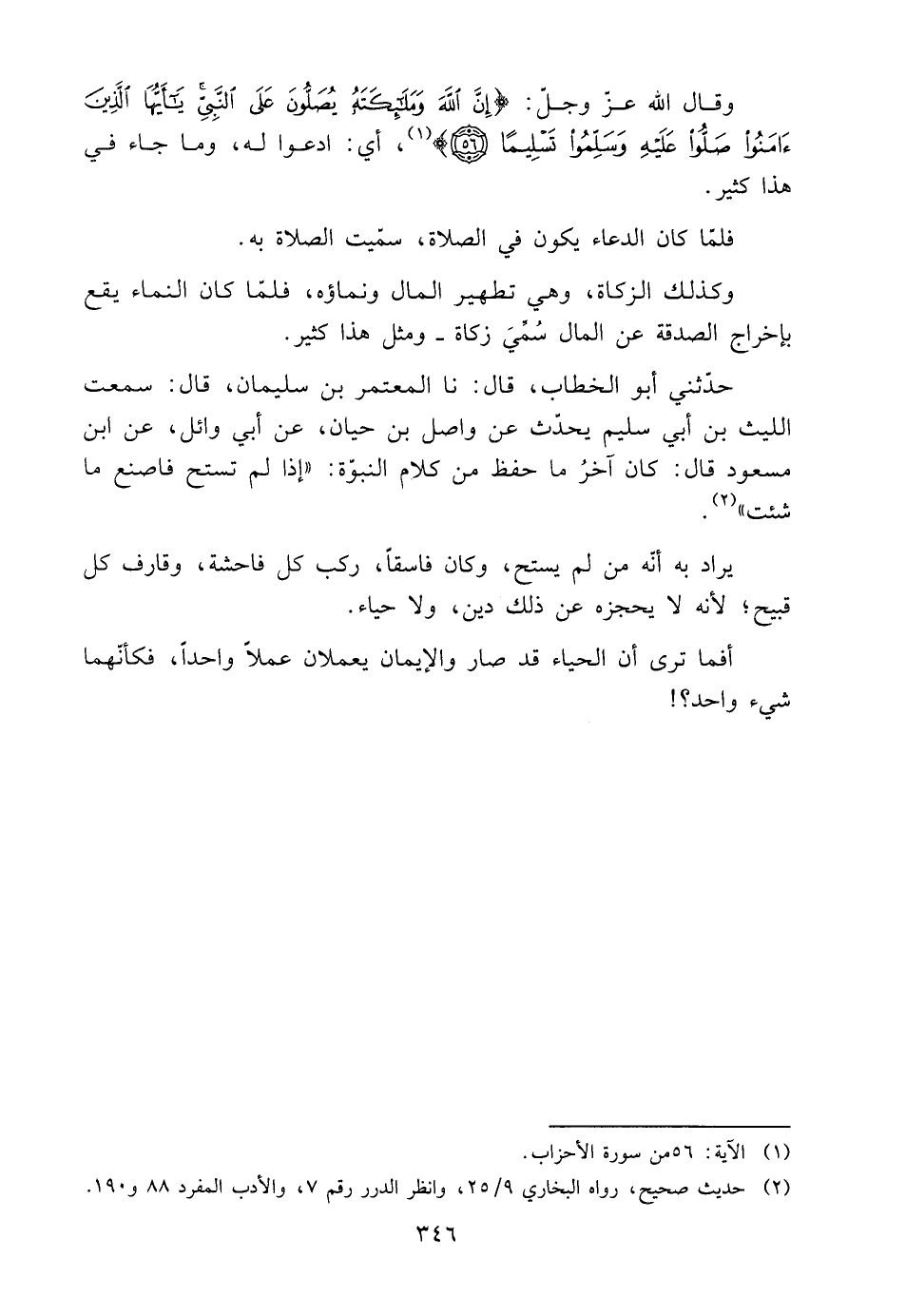 2 حَدِيث صَحِيح، رَوَاهُ البُخَارِيّ 9/ 25، وَانْظُر الدُّرَر رقم 7، وَالْأَدب الْمُفْرد 88 و190.