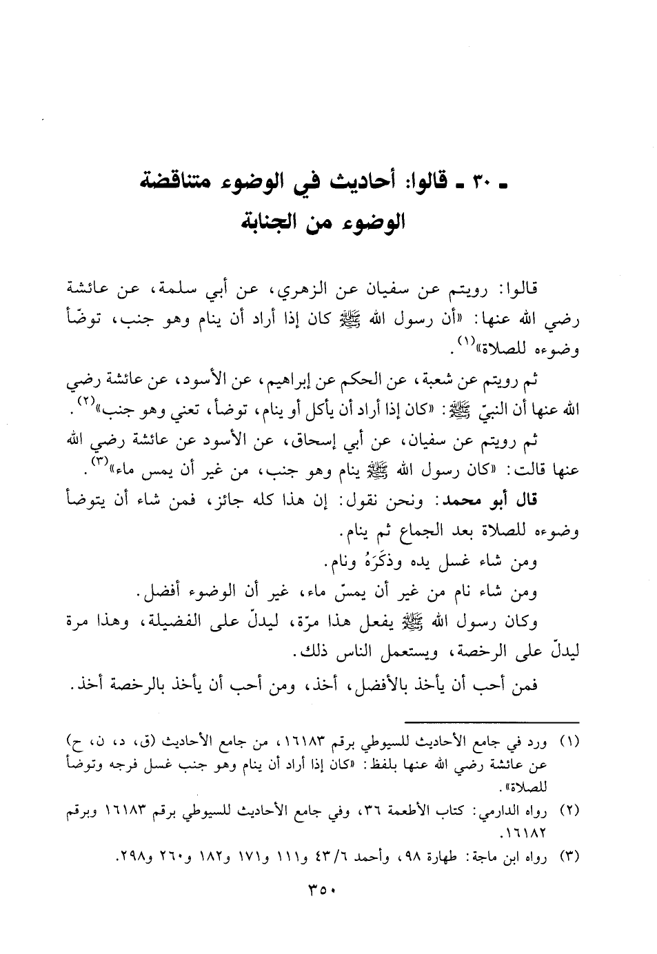 -30- قَالُوا: أَحَادِيثُ فِي الْوُضُوءِ مُتَنَاقِضَةٌ- الْوُضُوءُ مِنَ الْجَنَابَةِ: