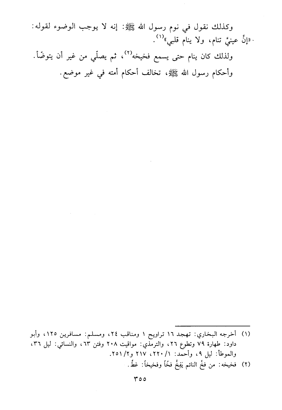 وَلِذَلِكَ كَانَ يَنَامُ حَتَّى يُسْمَعَ فَخِيخُهُ2، ثُمَّ يُصَلِّي مِنْ غَيْرِ أَنْ يَتَوَضَّأَ.