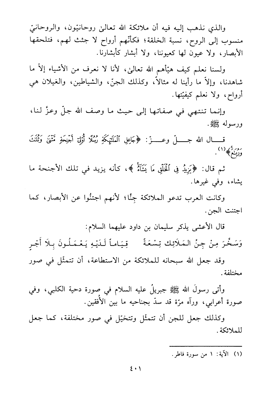 وَكَذَلِكَ جَعَلَ لِلْجِنِّ أَنْ تَتَمَثَّلَ وَتَتَخَيَّلَ فِي صُوَرٍ مُخْتَلِفَةٍ، كَمَا جَعَلَ للْمَلَائكَة.