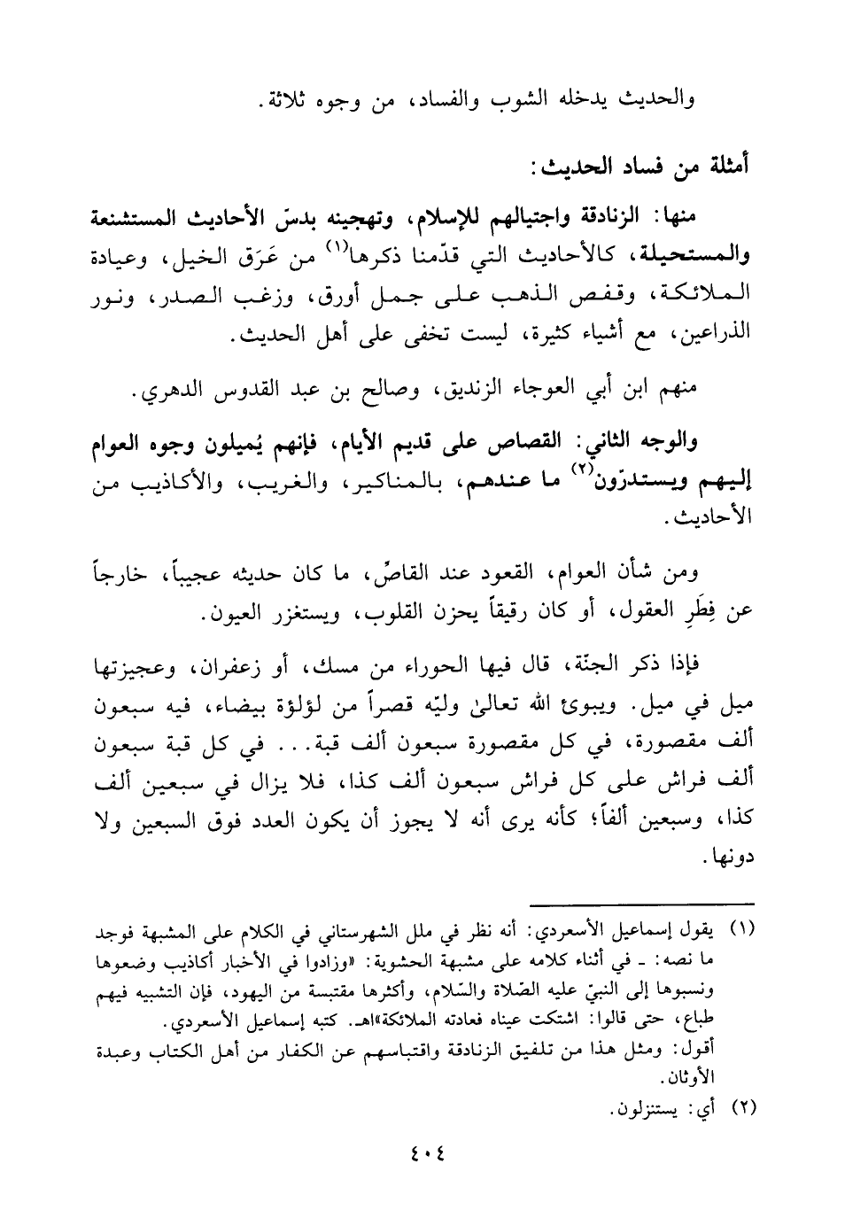 1 يَقُول إِسْمَاعِيل الأسعردي: أَنه نظر فِي ملل الشهرستاني فِي الْكَلَام على المشبهة فَوجدَ مَا نَصه: -فِي أثْنَاء كَلَامه على مشبهة الحشوية:"وَزَادُوا فِي الْأَخْبَار أكاذيب وضعوها ونسبوها إِلَى النَّبِي عَلَيْهِ الصَّلَاة وَالسَّلَام، وأكثرها مقتبسة من الْيَهُود، فَإِن التَّشْبِيه فيهم طباع، حَتَّى قَالُوا: اشتكت عَيناهُ فعادته الْمَلَائِكَة" ا. هـ. كتبه إِسْمَاعِيل الأسعردي.