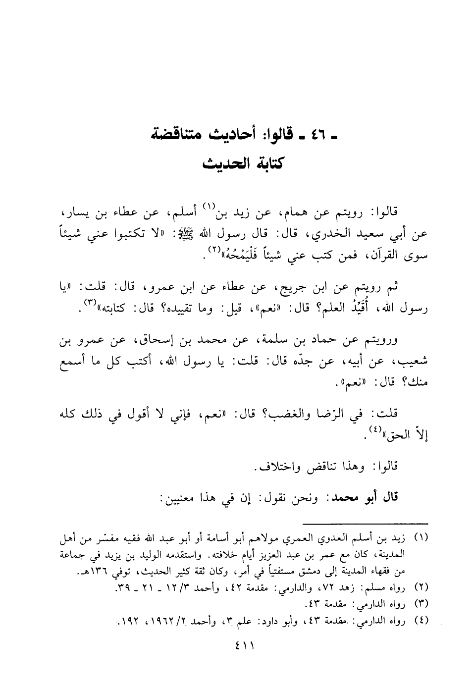 46- قَالُوا: أَحَادِيث متناقضة- كِتَابَة الحَدِيث: