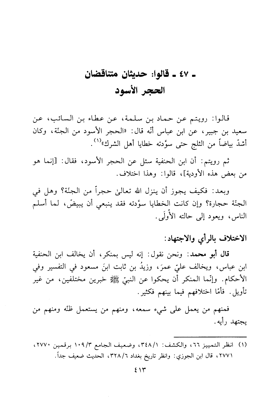 47- قَالُوا: حَدِيثَانِ مُتَنَاقِضَانِ- الْحَجَرُ الْأَسْوَدُ: