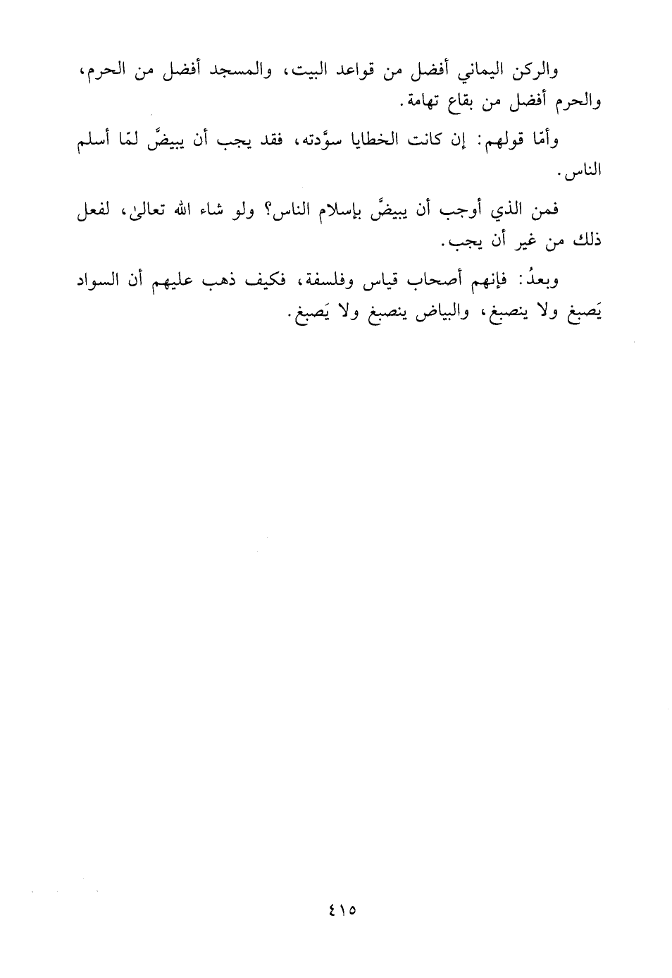 وَبَعْدُ: فَإِنَّهُمْ أَصْحَابُ قِيَاسٍ وَفَلْسَفَةٍ، فَكَيْفَ ذَهَبَ عَلَيْهِمْ أَنَّ السَّوَادَ يَصْبُغُ وَلَا يَنْصَبِغُ، وَالْبَيَاضَ يَنْصَبِغُ وَلَا يصْبغ.