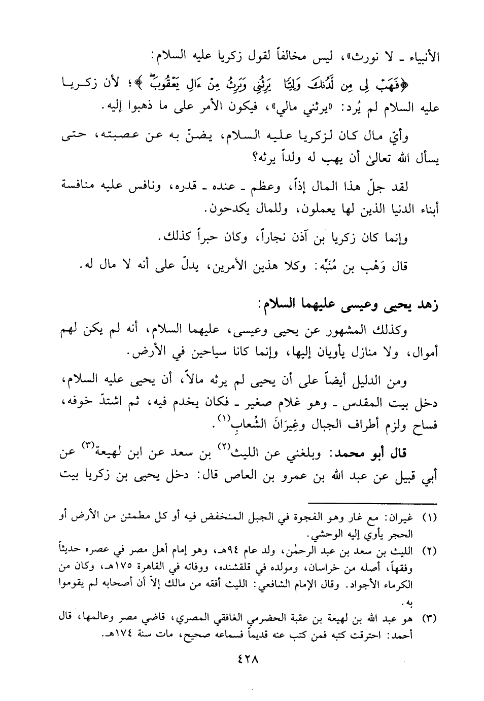 {فَهَبْ لِي مِنْ لَدُنْكَ وَلِيًّا، يَرِثُنِي وَيَرِثُ مِنْ آلِ يَعْقُوبَ} ؛ لِأَنَّ زَكَرِيَّا عَلَيْهِ السَّلَامُ لَمْ يُرِدْ: "يَرِثُنِي مَالِي"، فَيَكُونَ الْأَمْرُ عَلَى مَا ذَهَبُوا إِلَيْهِ.