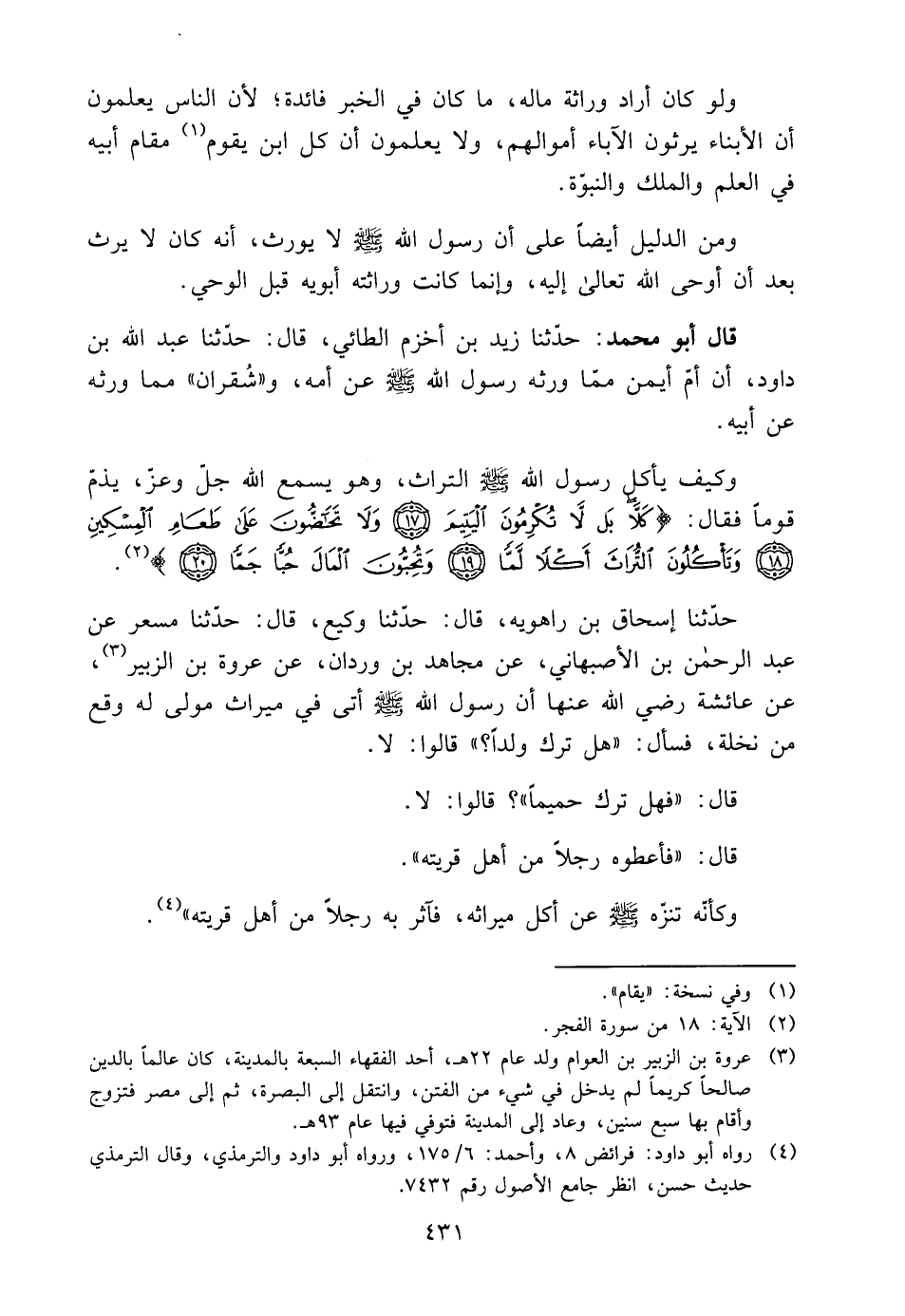 4 رَوَاهُ أَبُو دَاوُد: فَرَائض 8، وَأحمد: 6/ 175، وَرَوَاهُ أَبُو دَاوُد وَالتِّرْمِذِيّ، وَقَالَ التِّرْمِذِيّ حَدِيث حسن، انْظُر جَامع الْأُصُول رقم 7432.