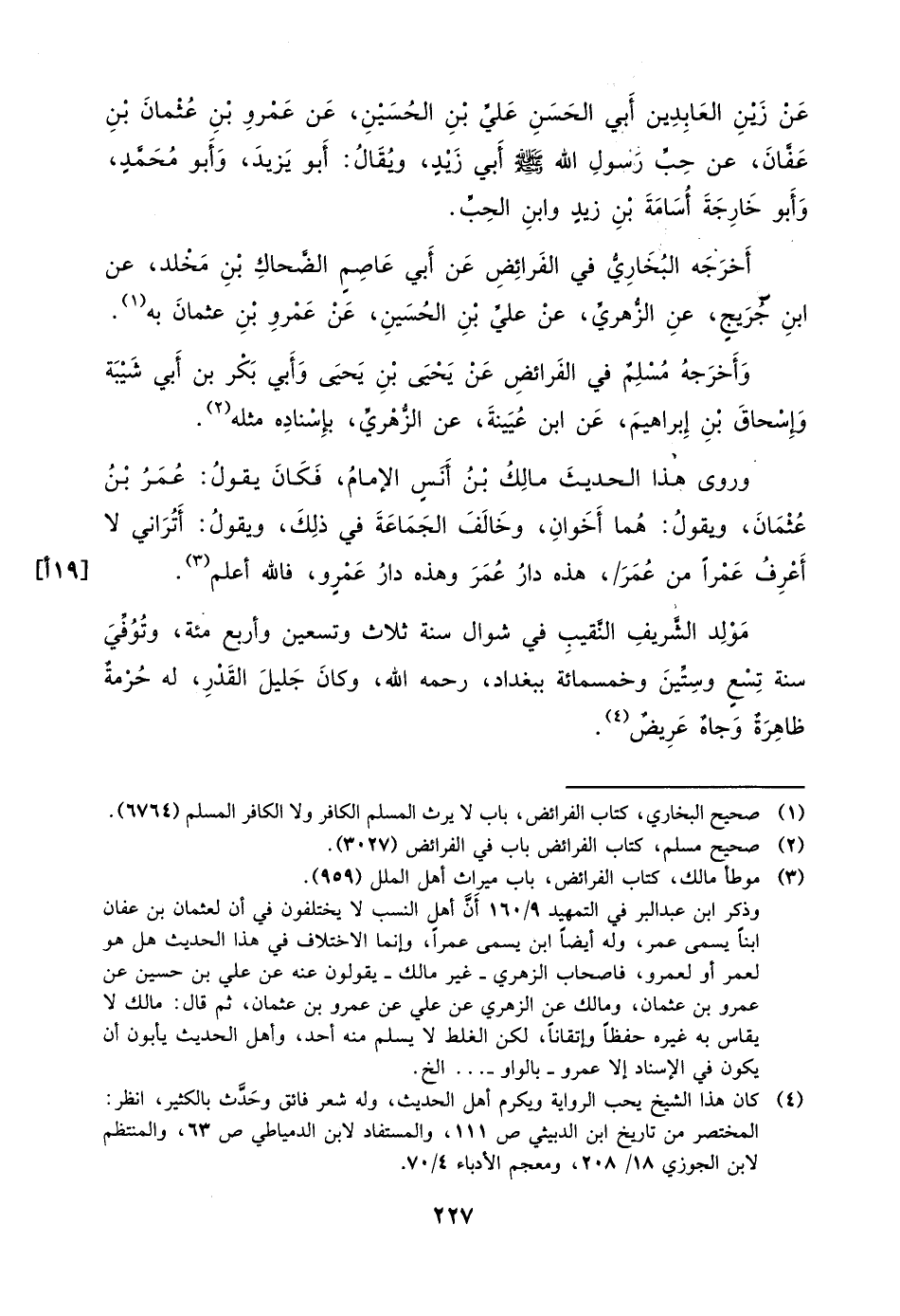 أَخْرَجَهُ الْبُخَارِيُّ فِي الْفَرَائِضِ عَنْ أَبِي عَاصِمٍ الضَّحَّاكِ بْنِ مَخْلَدٍ، عَنِ ابْنِ جُرَيْجٍ، عَنِ الزُّهْرِيِّ، عَنْ عَلِيِّ بْنِ الْحُسَيْنِ، عَنْ عَمْرِو بْنِ عُثْمَانَ بِهِ.