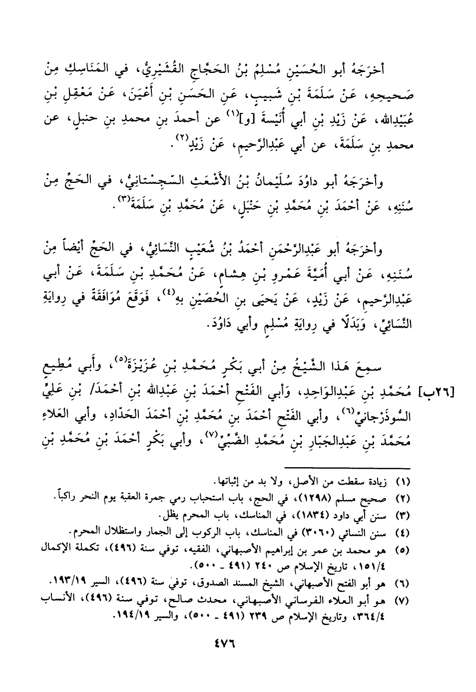 أَخْرَجَهُ أَبُو الْحُسَيْنِ مُسْلِمُ بْنُ الْحَجَّاجِ الْقُشَيْرِيُّ، فِي الْمَنَاسِكِ مِنْ صَحِيحِهِ، عَنْ سَلَمَةَ بْنِ شبيبٍ، عَنِ الْحَسَنِ بْنِ أَعْيَنَ، عَنْ مَعْقِلِ بن عبيد الله، عن زيد بن أبي أنيسة [و] عَنْ أَحْمَدَ بْنِ مُحَمَّدِ بْنِ حنبلٍ، عَنْ مُحَمَّدُ بْنُ سَلَمَةَ، عَنْ أَبِي عَبْدِ الرَّحِيمِ، عَنْ زيدٍ.