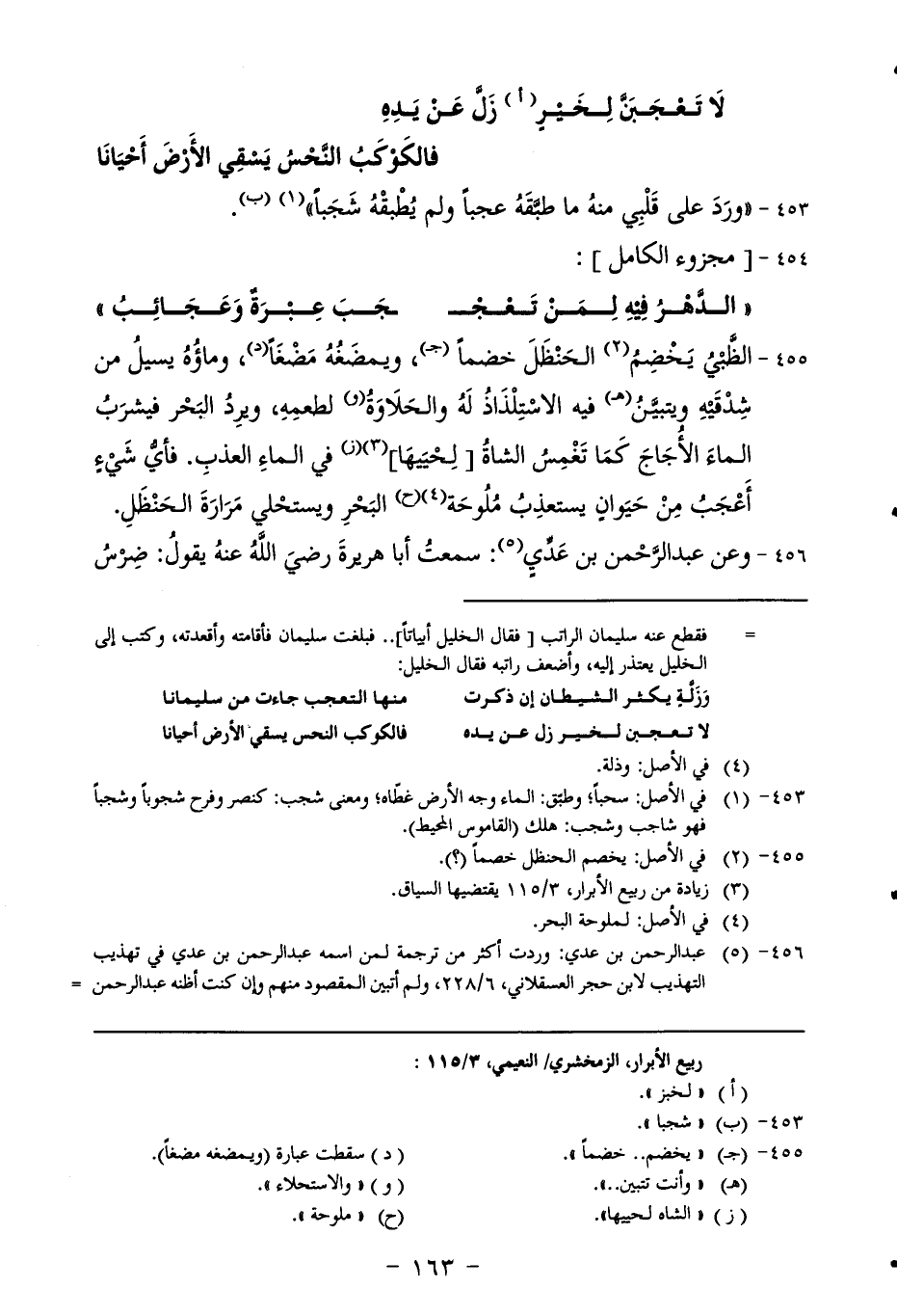 592-ونحوه أن رجلاُ أتى أخاه واستشاره في التقضي منه فقال له: إن كلباً لقي كلباً في فمه رغيف محترق. فقال: ويحك، ما أردأ هذا الرغيف. فقال: لعنة الله على من يتركه حتى يجد خيراً منه".