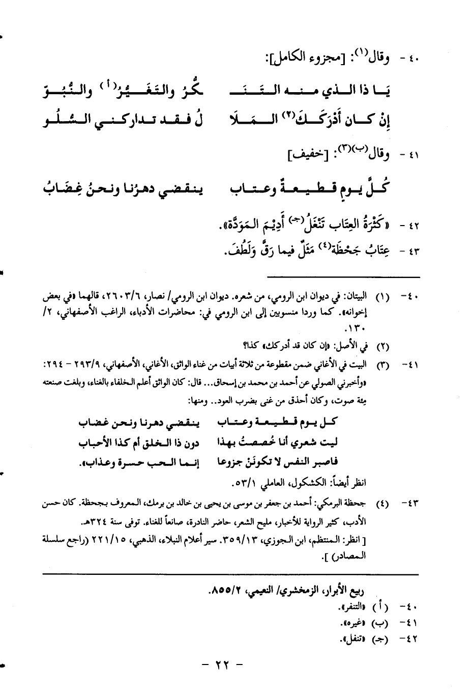 140-علق عبد الرحمن بن أبي عمار جارية وكان من نساك الحجاز فاستهتر بذكرها حتى مشى إليه عطاء وطاووس ومجاهد يعظونه فأنشد: [بسيط]