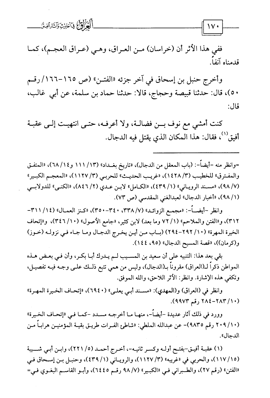 بقي بعد هذا: التنبيه على أن سعيد بن المسيب لم يدرك أبا بكر، وأن في بعض هذه المواطن ذكراً لـ (العراق) مقروناً بـ (الدجال) ، وليس من همي تتبع ذلك على وجه فيه تفصيل، وتكفي هذه الإشارة. وانظر: الأثر اللاحق، والله الموفق.