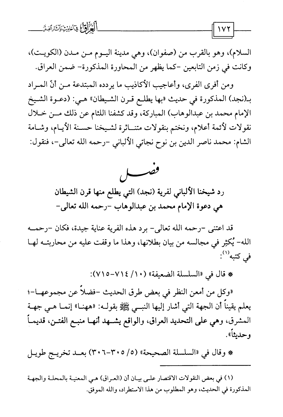 (¬1) في بعض النقولات الاقتصار على بيان أن (العراق) هي المعنية بالمحلة والجهة المذكورة في الحديث، وهو المطلوب من هذا الاستطراد، والله الموفق.