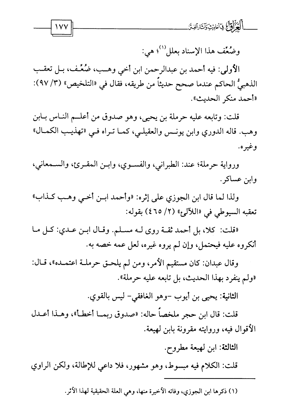 (¬1) ذكرها ابن الجوزي، وفاته الأخيرة منها، وهي العلة الحقيقية لهذا الأثر.