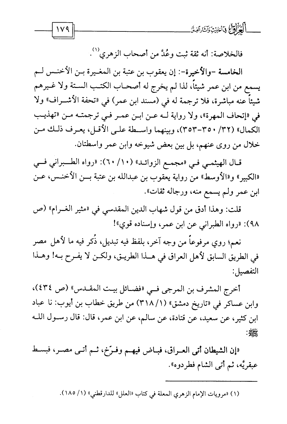 (¬1) «مرويات الإمام الزهري المعلة في كتاب «العلل» للدارقطني» (1/185) .