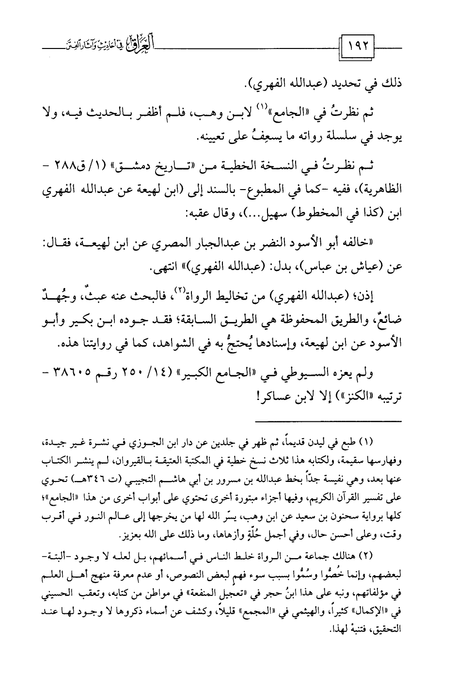 (¬2) هنالك جماعة من الرواة خلط الناس في أسمائهم، بل لعله لا وجود -ألبتة- لبعضهم، وإنما خُصُّوا وسُمُّوا بسبب سوء فهمٍ لبعض النصوص، أو عدم معرفة منهج أهل العلم في مؤلفاتهم، ونبه على هذا ابنُ حجر في «تعجيل المنفعة» في مواطن من كتابه، وتعقب الحسيني في «الإكمال» كثيراً، والهيثمي في «المجمع» قليلاً، وكشف عن أسماء ذكروها لا وجود لها عند التحقيق، فتنبهْ لهذا.