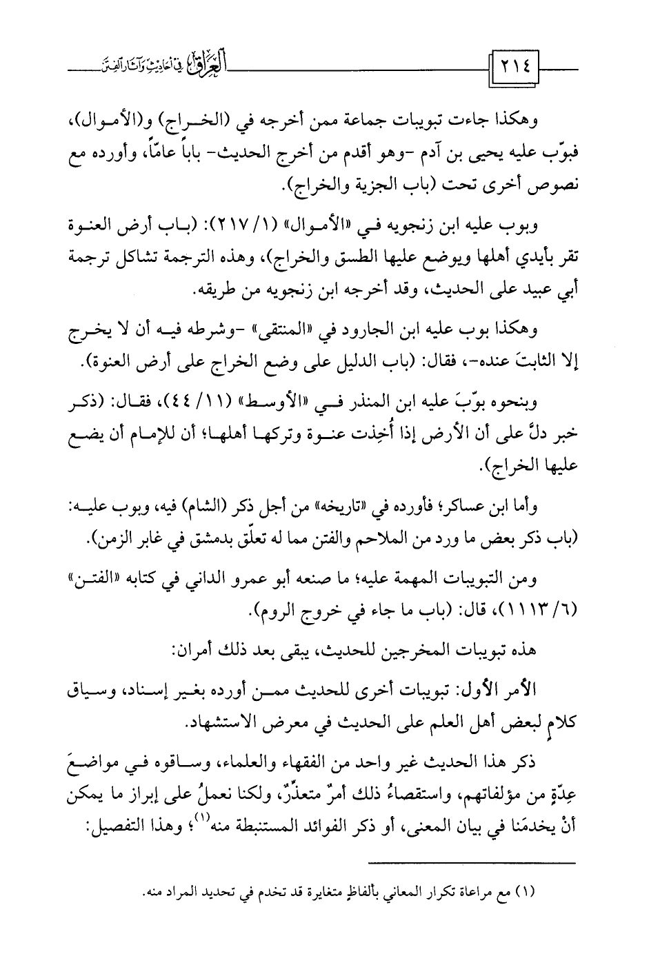 هذه تبويبات المخرجين للحديث، يبقى بعد ذلك أمران: