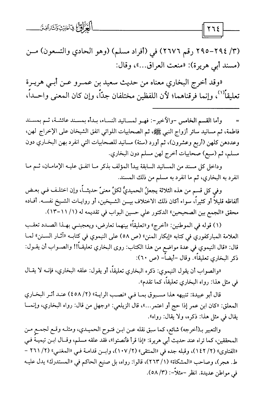 (¬1) قوله في الموطنين: «أخرج» و «تعليقاً» بينهما تعارض، ويعجبني بهذا الصدد تعقب العلامة المباركفوري في كتابه «إبكار المنن» (ص 58) على النيموي في كتابه «آثار السنن» لما قال: «قال النيموي في عدة مواضع من هذا الكتاب: روى البخاري تعليقاً!! والصواب أن يقول: ذكر البخاري تعليقاً» . وقال -أيضاً- (ص 60) :