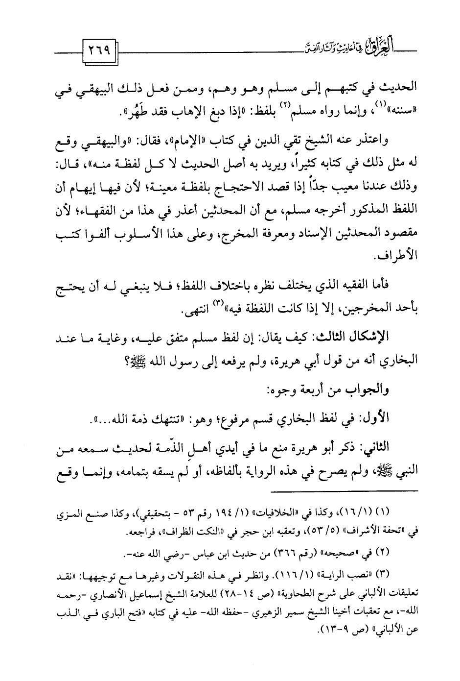 (¬3) «نصب الراية» (1/116) . وانظر في هذه النقولات وغيرها مع توجيهها: «نقد تعليقات الألباني على شرح الطحاوية» (ص 14-28) للعلامة الشيخ إسماعيل الأنصاري -رحمه الله-، مع تعقبات أخينا الشيخ سمير الزهيري -حفظه الله- عليه في كتابه «فتح الباري في الذب عن الألباني» (ص 9-13) .