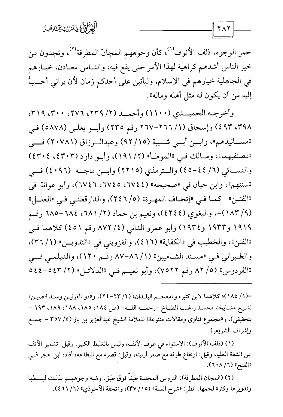وأخرجه الحميدي (1100) وأحمد (2/239، 276، 300، 319، 398، 493) وإسحاق (1/266-267 رقم 235) وأبو يعلى (5878) في «مسانيدهم» ، وابن أبي شيبة (15/92) وعبد الرزاق (20781) في «مصنفيهما» ، ومالك في «الموطأ» (2/191) ، وأبو داود (4303، 4304) والنسائي (6/44-45) والترمذي (2215) وابن ماجه (4096) في «سننهم» ، وابن حبان في «صحيحه» (6744، 6745، 6746) ، وأبو عوانة في «الفتن» -كما في «إتحاف المهرة» (5/246) ، والدارقطني في «العلل» (9/183) -، والبغوي (4244) ، ونعيم بن حماد (2/681، 684-685 رقم 1919 و1933 و1934) وأبو عمرو الداني (4/872 رقم 451) كلاهما في «الفتن» ، والخطيب في «الكفاية» (416) ، والقزويني في «التدوين» (1/36) ، والطبراني في «مسند الشاميين» (1/86-87 رقم 120) ، والديلمي في «الفردوس» (5/82 رقم 7522) ، وأبو نعيم في «الدلائل» (2/543-544