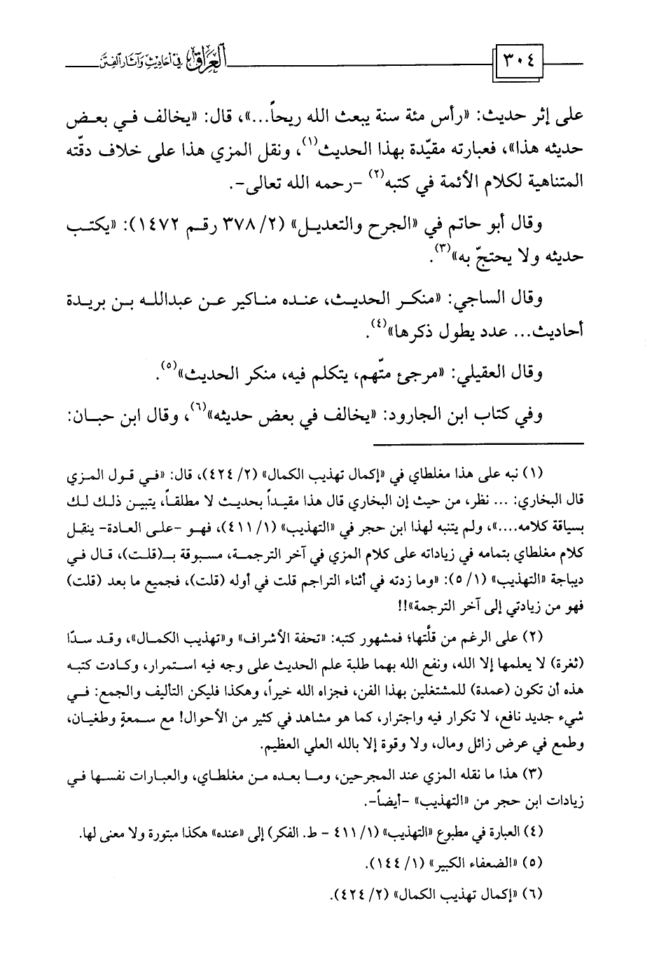 (¬3) هذا ما نقله المزي عند المجرحين، وما بعده من مغلطاي، والعبارات نفسها في زيادات ابن حجر من «التهذيب» -أيضاً-.