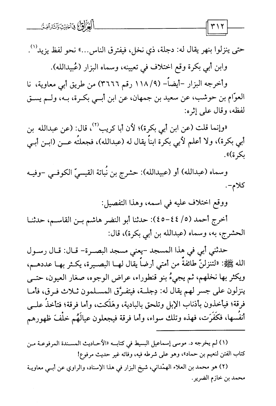 (¬2) هو محمد بن العلاء الهمْداني، شيخ البزار في هذا الإسناد، والراوي عن أبي معاوية محمد بن خازم الضرير.