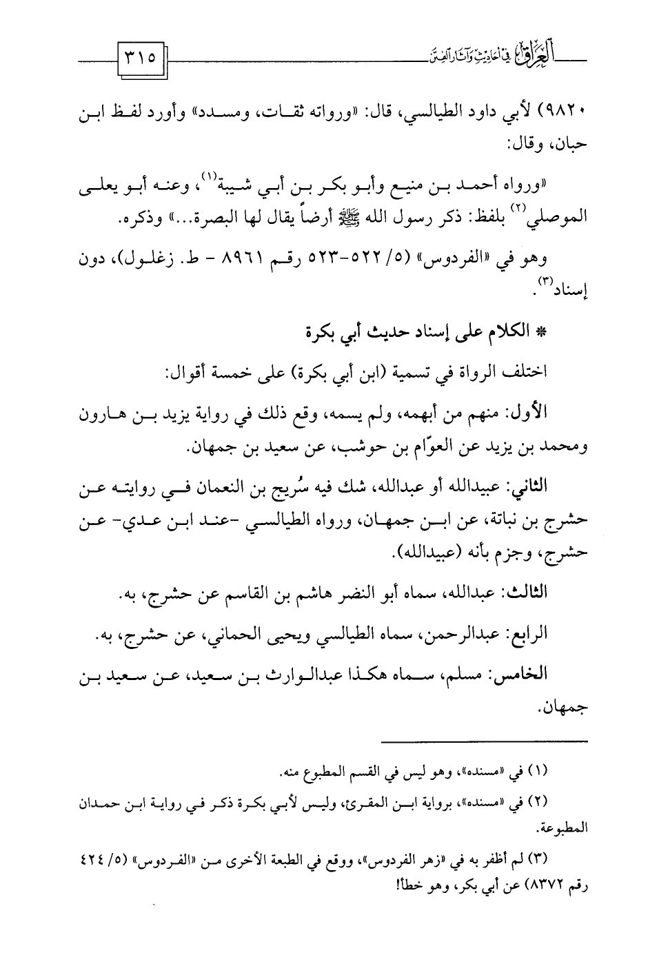 9820) لأبي داود الطيالسي، قال: «ورواته ثقات، ومسدد» وأورد لفظ ابن حبان، وقال: