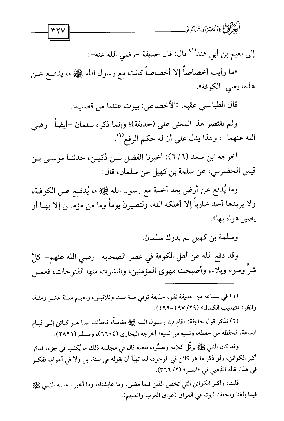 (¬1) في سماعه من حذيفة نظر، حذيفة توفي سنة ست وثلاثين، ونعيم سنة عشر ومئة، وانظر: «تهذيب الكمال» (29/497-499) .