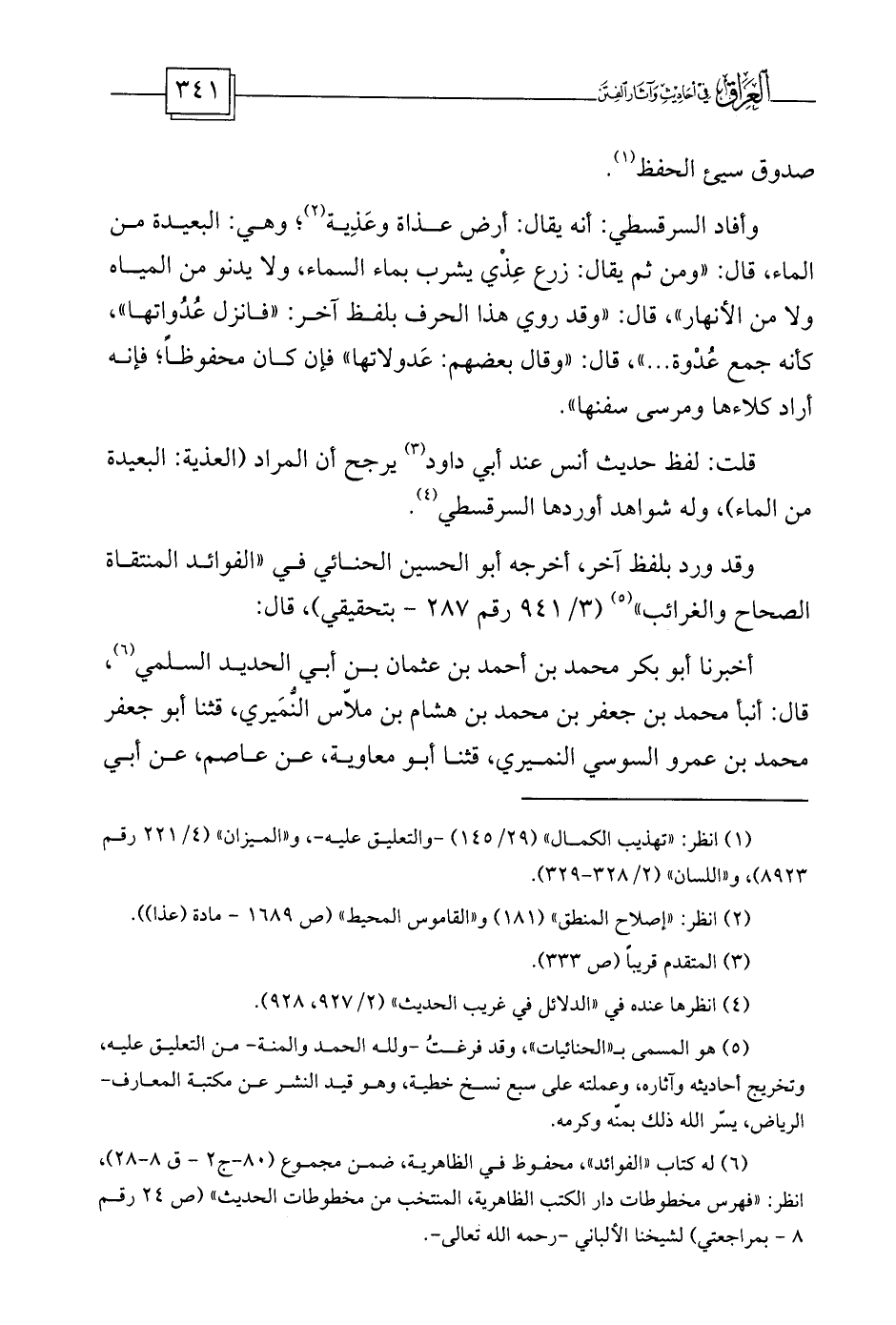 قلت: لفظ حديث أنس عند أبي داود (¬3) يرجح أن المراد (العذية: البعيدة من الماء) ، وله شواهد أوردها السرقسطي (¬4) .