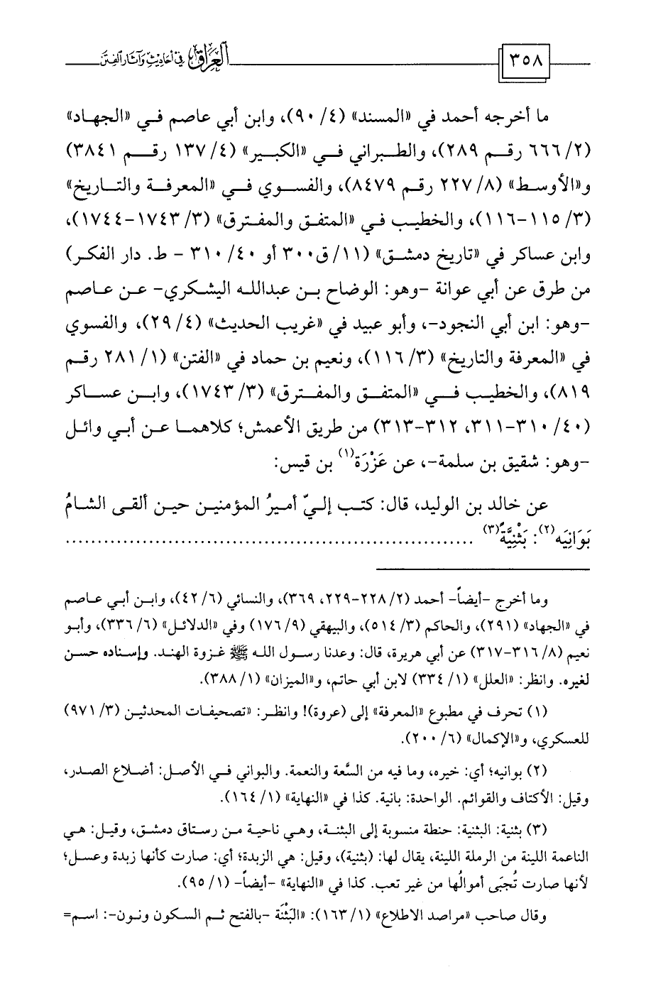 ما أخرجه أحمد في «المسند» (4/90) ، وابن أبي عاصم في «الجهاد» (2/666 رقم 289) ، والطبراني في «الكبير» (4/137 رقم 3841) و «الأوسط» (8/227 رقم 8479) ، والفسوي في «المعرفة والتاريخ» (3/115-116) ، والخطيب في «المتفق والمفترق» (3/1743-1744) ، وابن عساكر في «تاريخ دمشق» (11/ق300 أو 40/310 - ط. دار الفكر) من طرق عن أبي عوانة -وهو: الوضاح بن عبد الله اليشكري- عن عاصم ... -وهو: ابن أبي النجود-، وأبو عبيد في «غريب الحديث» (4/29) ، والفسوي في «المعرفة والتاريخ» (3/116) ، ونعيم بن حماد في «الفتن» (1/281 رقم 819) ، والخطيب في «المتفق والمفترق» (3/1743) ، وابن عساكر (40/310-311، 312-313) من طريق الأعمش؛ كلاهما عن أبي وائل ... -وهو: شقيق بن سلمة-، عن عَزْرَة (¬1) بن قيس: