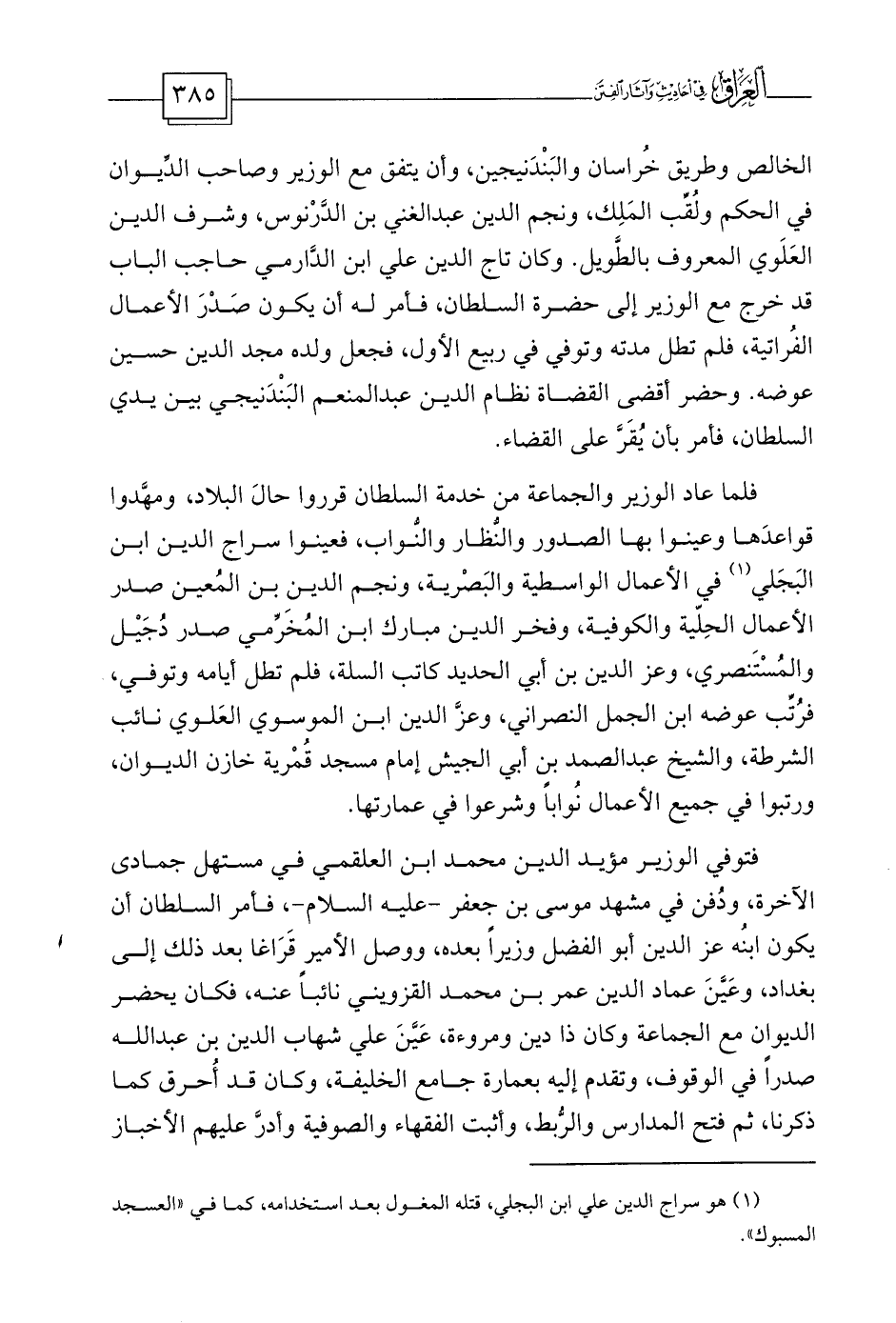 (¬1) هو سراج الدين علي ابن البجلي، قتله المغول بعد استخدامه، كما في «العسجد المسبوك» .