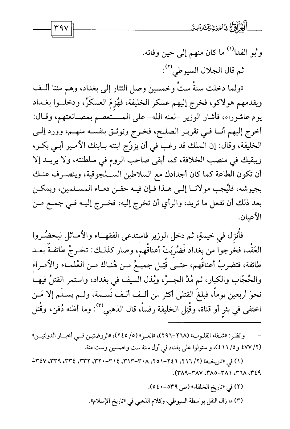 (¬2) في «تاريخ الخلفاء» (ص 539-540) .