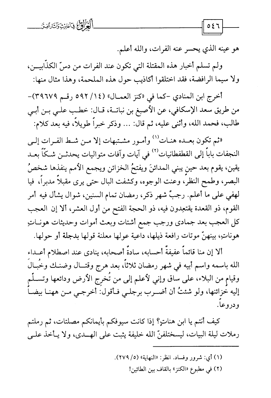 ولم تسلم أخبار هذه المقتلة التي تكون عند الفرات من دسّ الكذّابين، ولا سيما الرافضة، فقد اختلقوا أكاذيب حول هذه الملحمة، وهذا مثال منها: