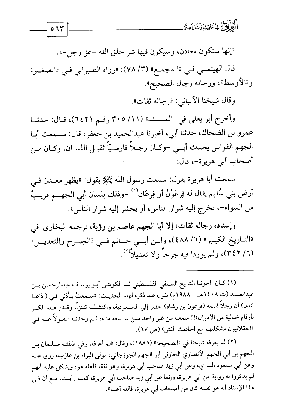 (¬1) كان أخونا الشيخ السلفي الفلسطيني ثم الكويتي أبو يوسف عبد الرحمن بن عبد الصمد (ت 1408هـ - 1988م) يقول عند ذكره لهذا الحديث: «سمعتُ بأُذني في (إذاعة لندن) أن رجلاً اسمه (فرعون بن رشاد) حضر إلى السعودية، واكتشف كنزاً، وقدر هذا الكنز بأرقام خيالية من الأموال» !! سمعته من غير واحد ممن سمعه منه، ثم وجدته منقولاً عنه في «العقلانيون مشكلتهم مع أحاديث الفتن» (ص 67) .