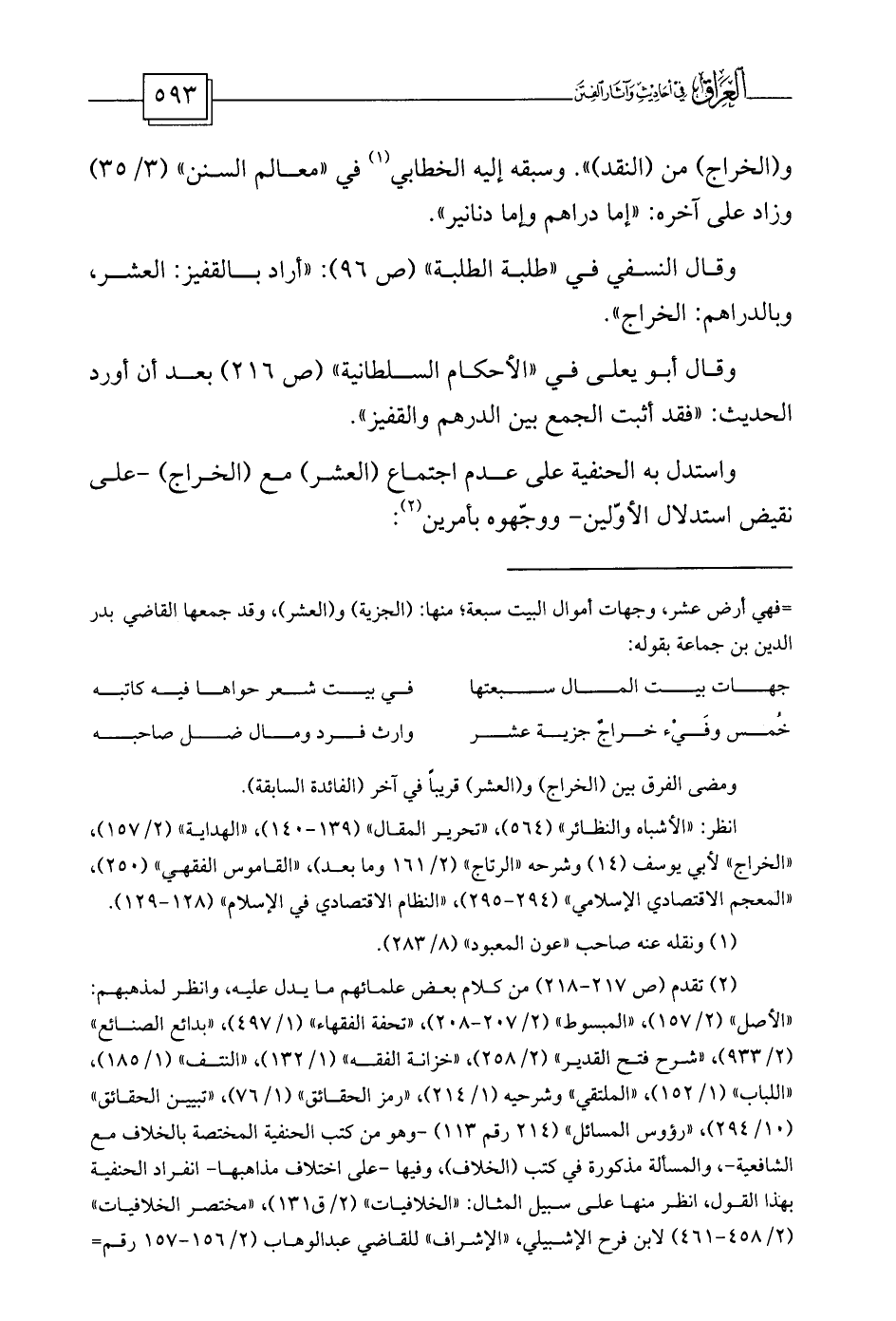 انظر: «الأشباه والنظائر» (564) ، «تحرير المقال» (139-140) ، «الهداية» (2/157) ، «الخراج» لأبي يوسف (14) وشرحه «الرتاج» (2/161 وما بعد) ، «القاموس الفقهي» (250) ، «المعجم الاقتصادي الإسلامي» (294-295) ، «النظام الاقتصادي في الإسلام» (128-129) .