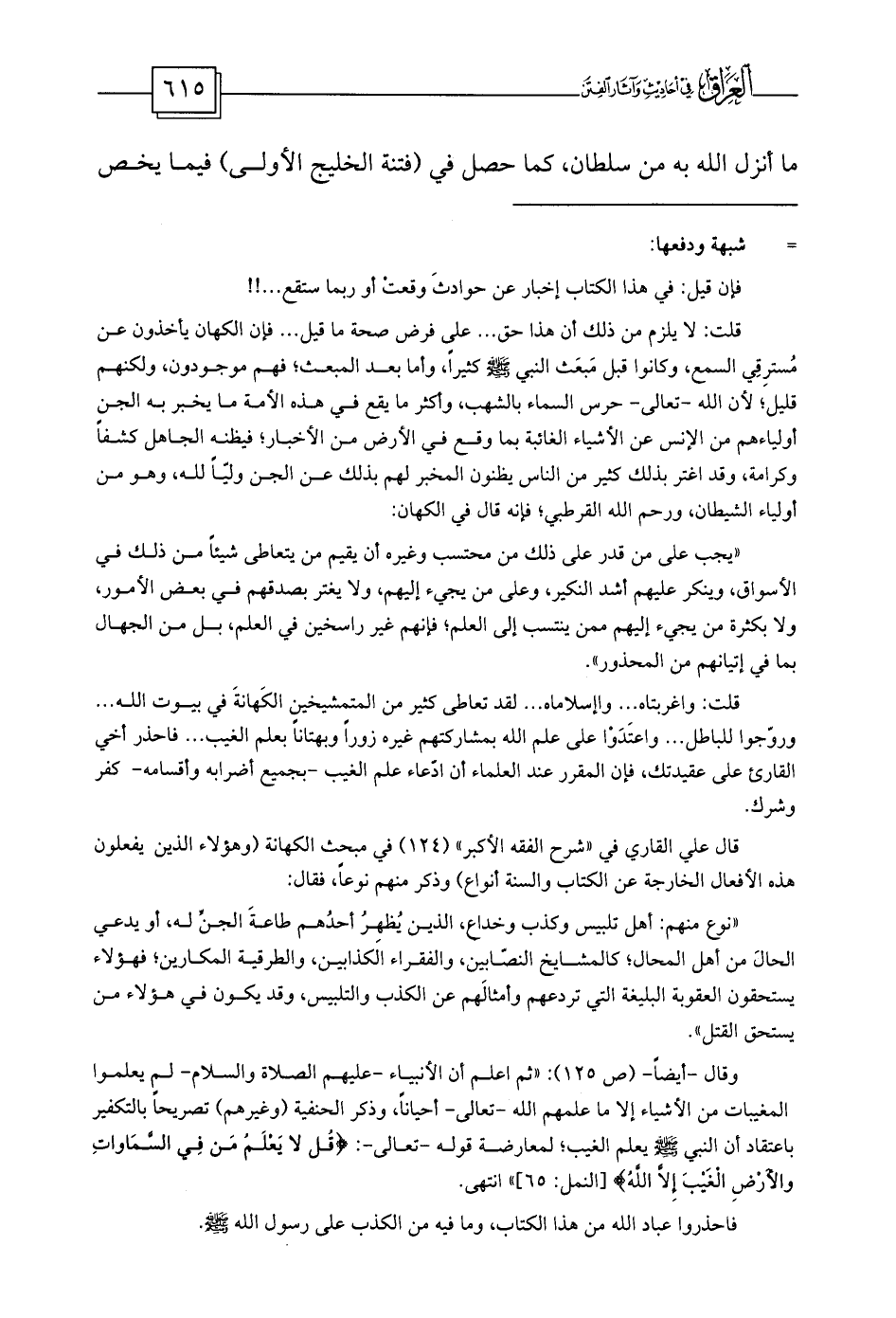 ما أنزل الله به من سلطان، كما حصل في (فتنة الخليج الأولى) فيما يخص