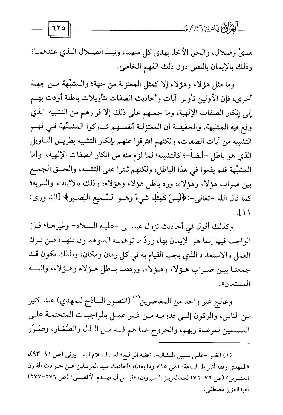 (¬1) انظر -على سبيل المثال-: «فقه الواقع» لعبد السلام البسيوني (ص 91-93) ، «المهدي وفقه أشراط الساعة» (ص 715 وما بعد) ، «أحاديث سيد المرسلين عن حوادث القرن العشرين» (ص 75-76) لعبد العزيز السيروان، «قبل أن يهدم الأقصى» (ص 276-277) لعبد العزيز مصطفى.