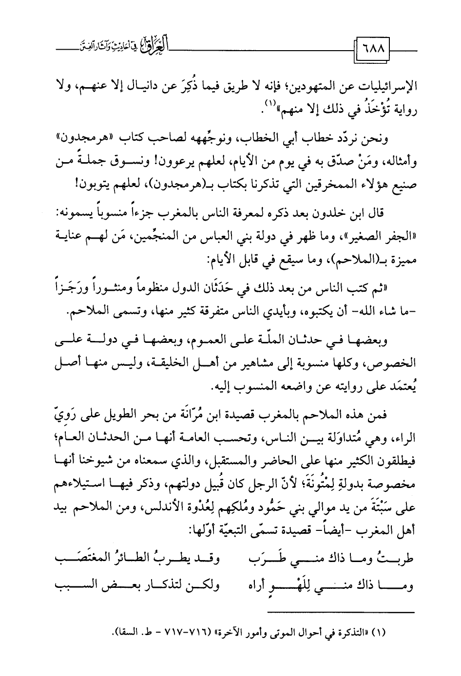 (¬1) «التذكرة في أحوال الموتى وأمور الآخرة» (716-717 - ط. السقا) .