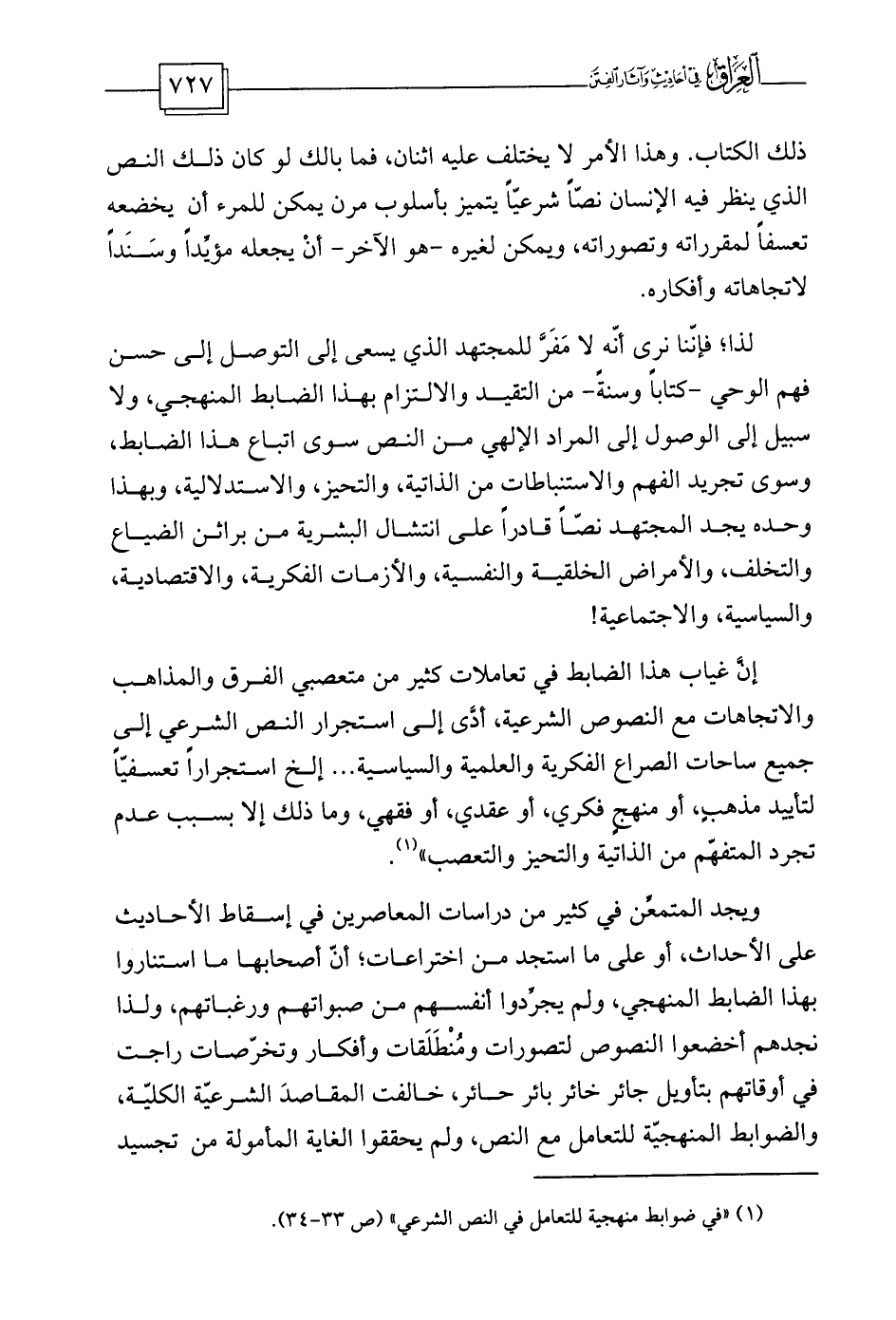 (¬1) «في ضوابط منهجية للتعامل في النص الشرعي» (ص 33-34) .