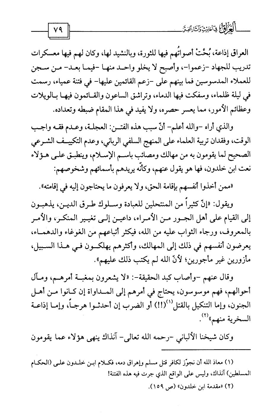 (¬1) معاذ الله أن نجوّز لكافر قتل مسلم وإهراق دمه، فكلام ابن خلدون على (الحكام المسلطين) آنذاك، وليس على الواقع الذي جرت فيه هذه الفتنة!