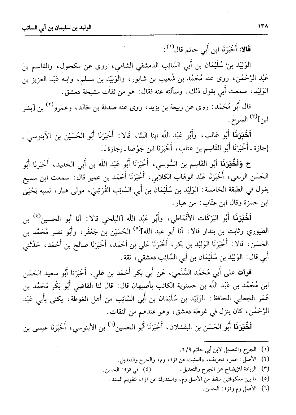 (1) الجرح والتعديل لابن أبي حاتم 9 / 6